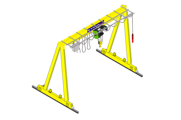 Las grúas tipo pórtico monorriel sobre rieles con capacidades estándar hasta 16 Toneladas, pueden ser suministradas en diversas versiones y su versatilidad al interior de los talleres o exteriores es particularmente alta versus su costo de instalación.