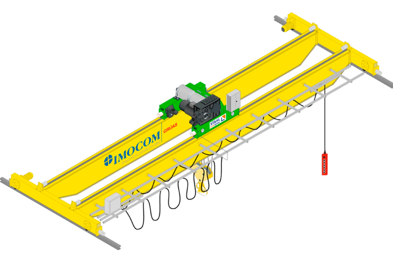 a de izaje cuando hay espacios y alturas restringidas. Las vigas puente para un puente grúa birriel normalmente son diseñadas de acuerdo a la norma CMAA 70, y su deflexión máxima no debe superar la luz entre rieles /888 para un óptimo desempeño. IMOCOM ha suministrado puentes grúa para casa de máquina de grandes, medianas y pequeñas centrales hidroeléctricas PCH, en una gran cantidad de proyectos en Colombia, Perú y otros países, con una capacidad de hasta 2×330 T (660T).